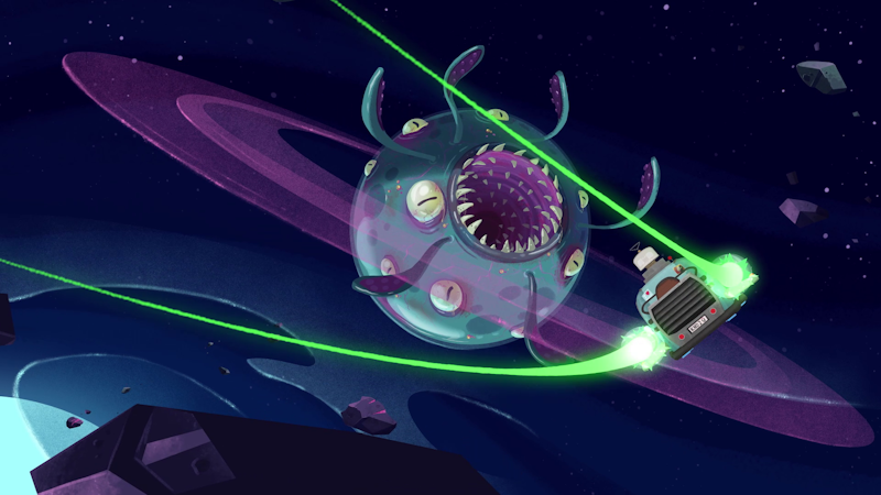 The Orange Roughie needs repairs. While seeking out a rare power source, Tumeke and Junior fight their way through the Bogroid, a planet-sized organism, and meet a potential new ally who has definitely been alone too long.
